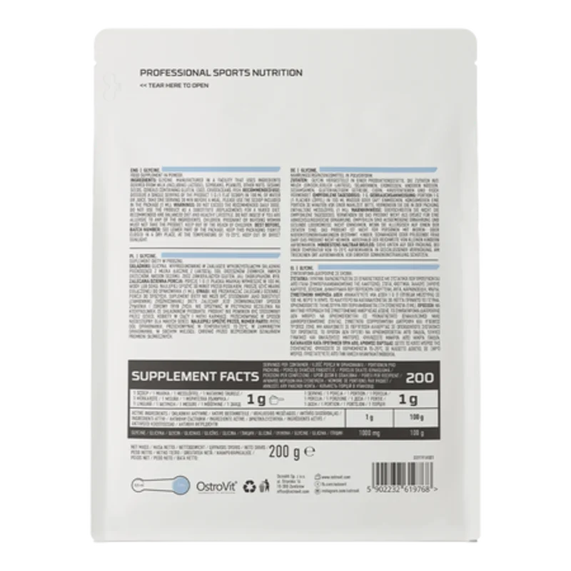 OstroVit Glycine is a high-quality dietary supplement that contains only one ingredient, which is L-glycine. It is a preparation available in a convenient powder form, designed for athletes and conscious consumers who want to supplement the daily diet.