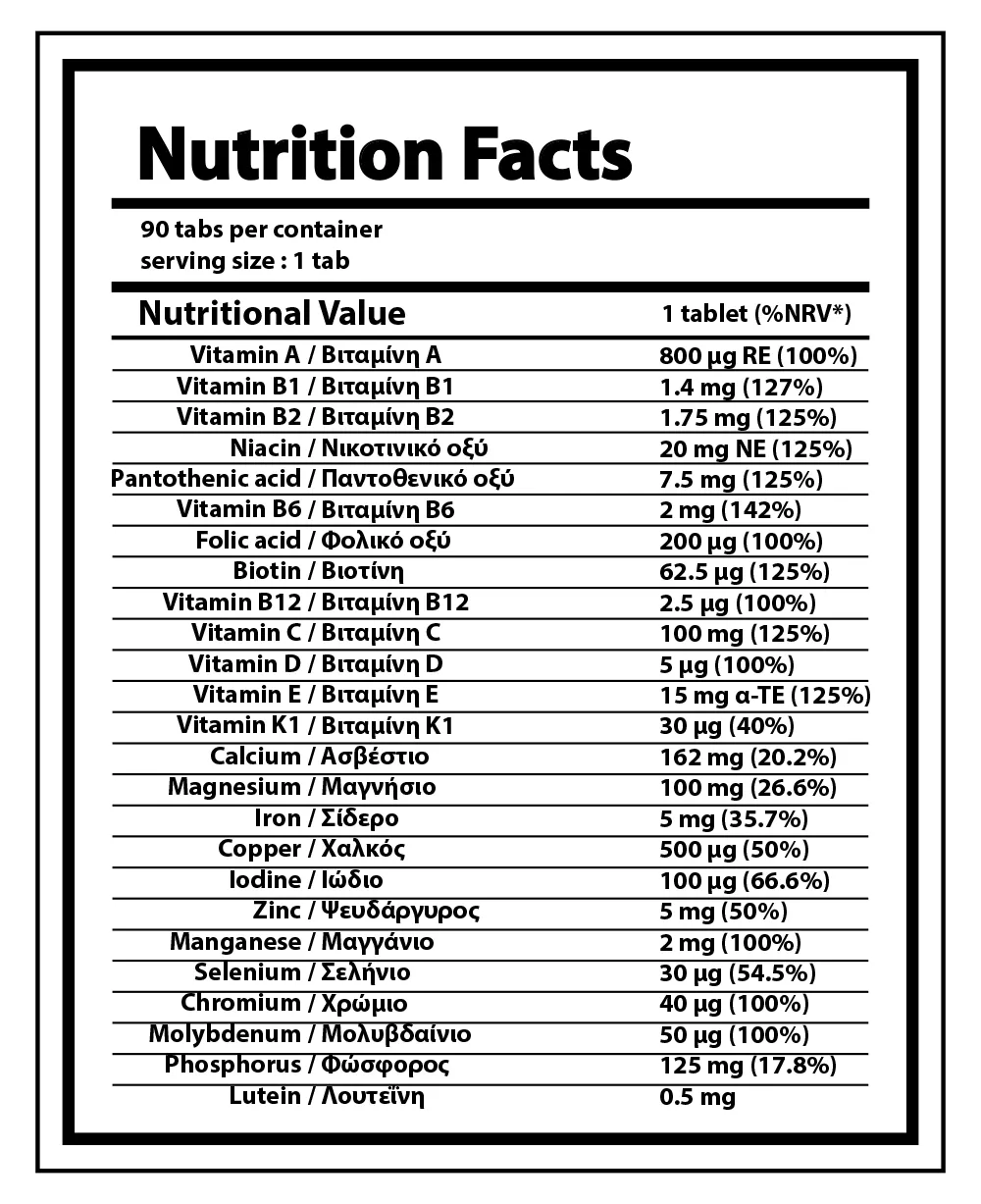 • 13 vitamins and 12 minerals