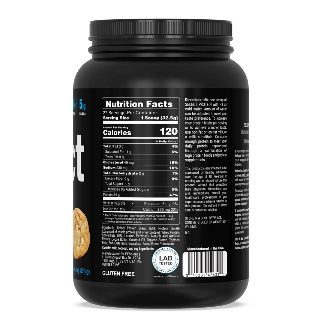 Milk protein isolates — the blend used in Select Protein — provides at least 90% protein by weight and less than 0.5 grams of lactose per serving, making it appropriate for lactose intolerant or sensitive individuals (2).